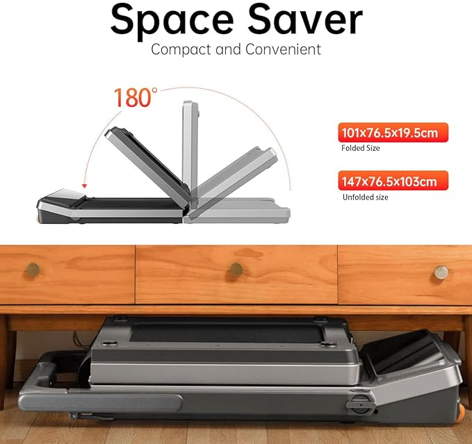 Diseño compacto y compacto: La cinta de correr WalkingPad está diseñada para satisfacer las necesidades de los espacios modernos. No requiere montaje, así que simplemente despliégala y comienza tus sesiones de entrenamiento con comodidad inmediata. Su innovador diseño plegable de 180° maximiza el espacio, lo que facilita su almacenamiento debajo de las camas o contra la pared cuando no se usa. Es especialmente adecuada para apartamentos pequeños o espacios de oficina reducidos.